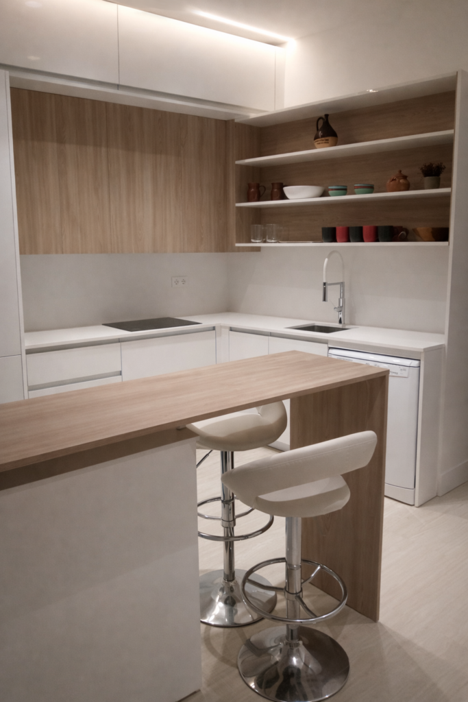 En nuestros proyectos encontrarás cocinas personalizadas, desarrolladas desde nuestro estudio, donde cada decisión —distribución, materiales y detalles— responde a un criterio claro y coherente.